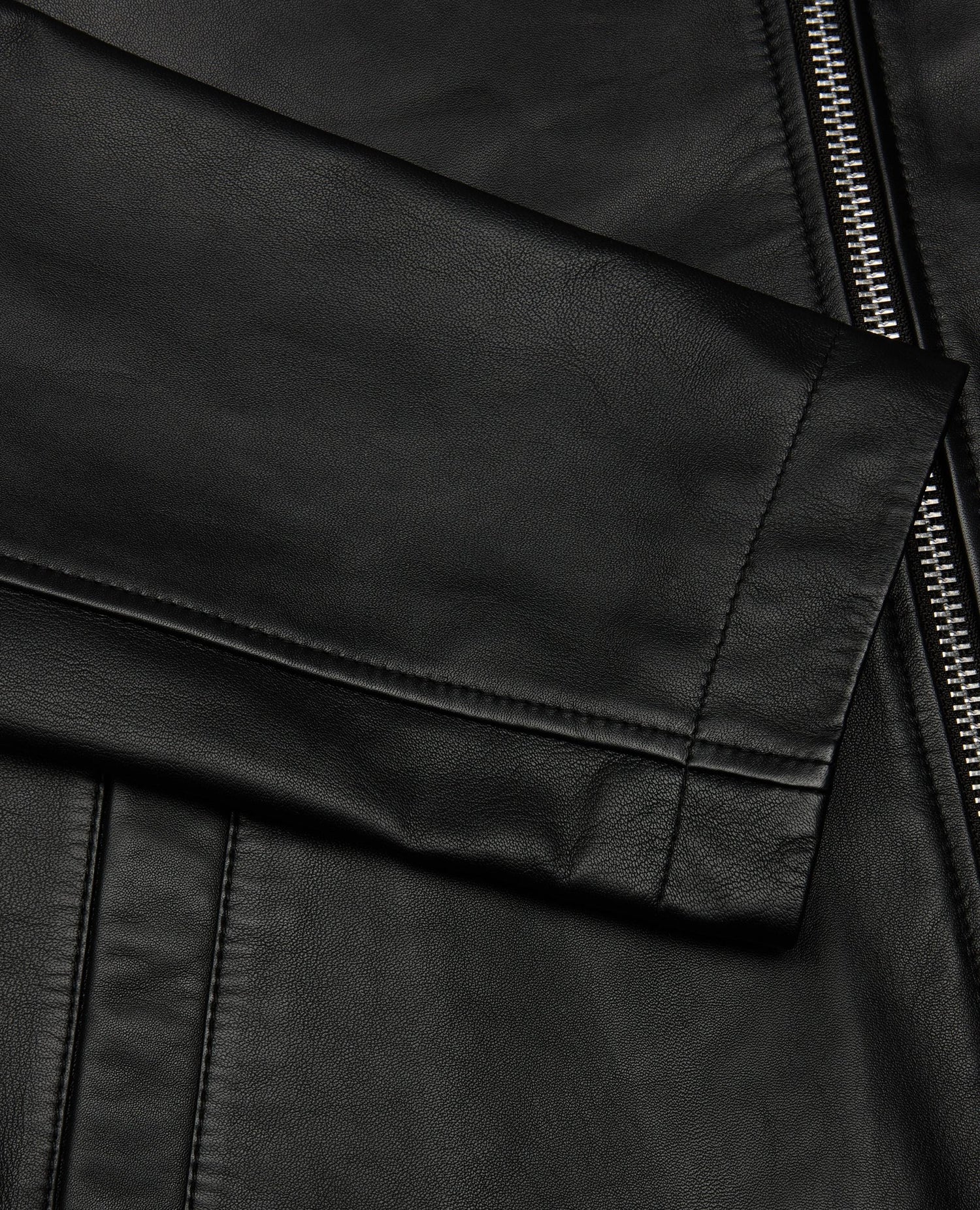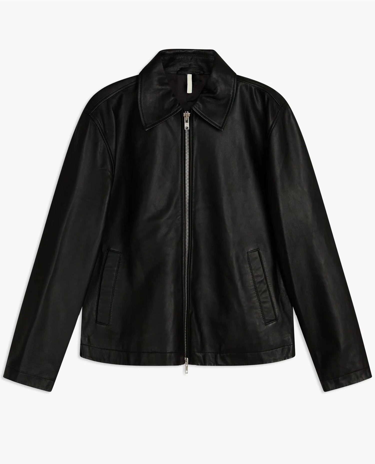 Classic short leather jacket with a classic collar. Closes with a two-way zipper and features two front pockets. Made of vegetable-tanned sheep leather and lined with certified viscose. Finished with OEKO-TEX-certified recycled metal trim.