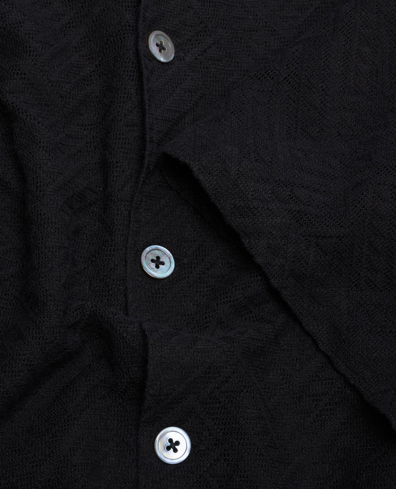 A striking short-sleeve shirt featuring a relaxed fit and a straight hem. Its herringbone-patterned fabric is loosely woven and lightly washed. Closed with genuine mother-of-pearl buttons.