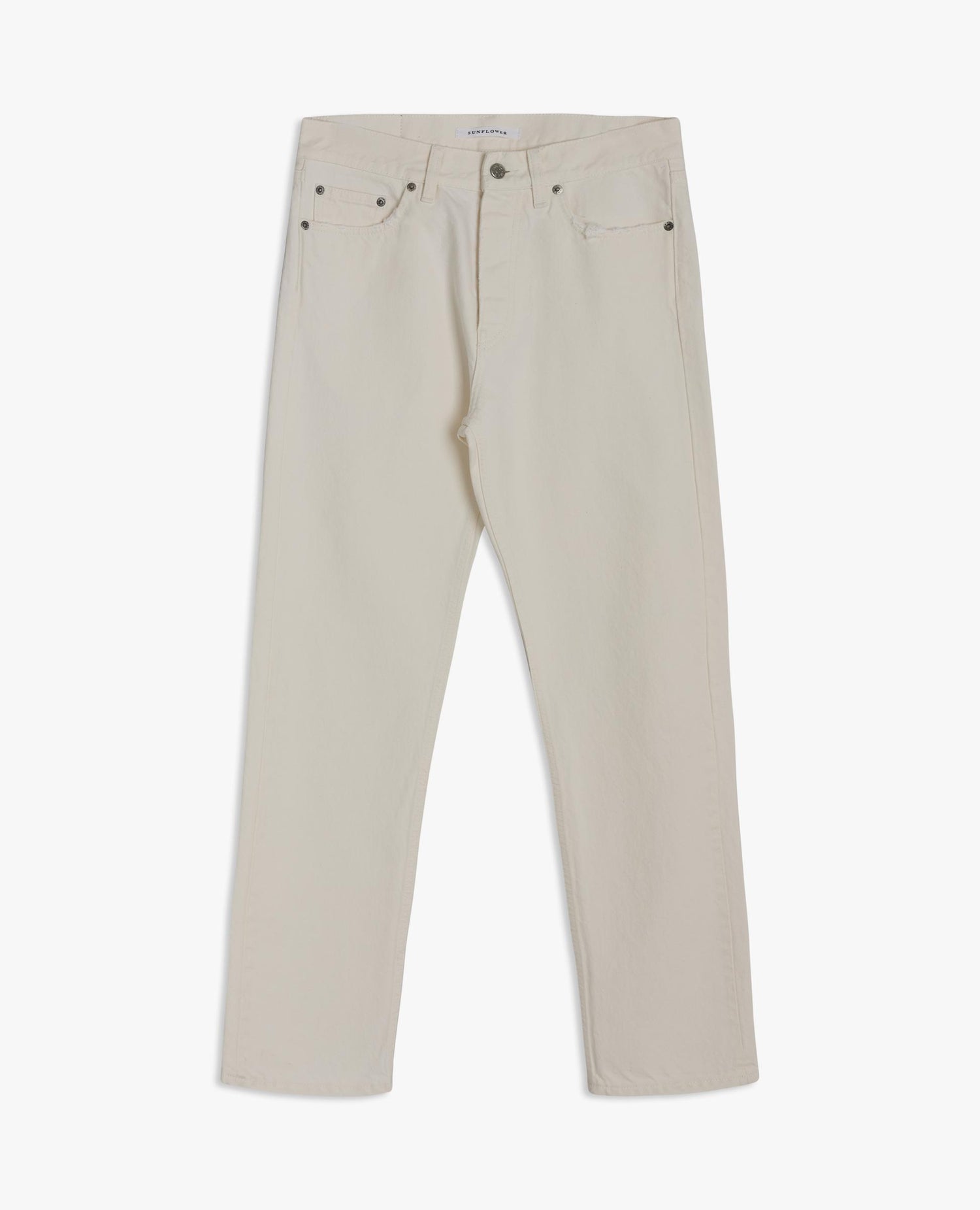 Classic regular-fit Italian-made jeans. Made of 13,5 oz Italian denim spun from GOTS-certified organic cotton. Features five pockets (two back pockets, two front pockets, and a watch pocket) and a button fly. Complete with OEKO-TEX-certified recycled metal trim and an environmentally friendly white wash.